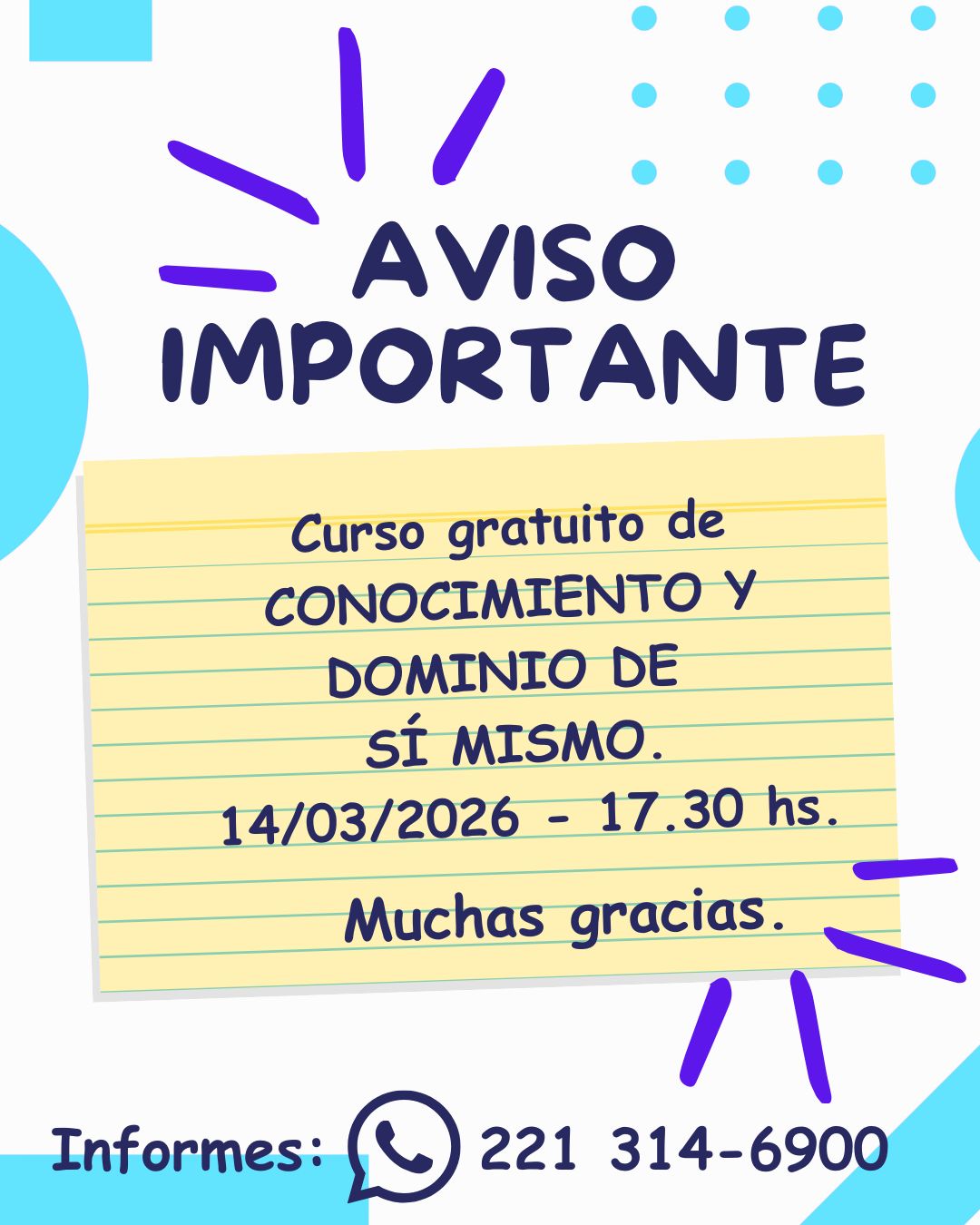 Inicio del curso: Sábado 14/03/26 a las 16 hs., en la sede de la entidad, calle 6 N° 1684 (entre 66 y 67) de La Plata.